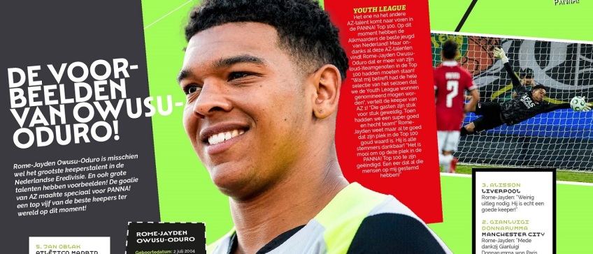 Hij is misschien wel het grootste keeperstalent in de Nederlandse Eredivisie. En ook grote talenten hebben voorbeelden! Rome-Jayden Owusu-Oduro maakte speciaal voor PANNA! een top vijf van de beste keepers ter wereld op dit moment! De goalie van AZ opent met Jan Oblak van Atlético Madrid. "Ik heb hem altijd een goede keeper gevonden. Hij keept al heel lang op een hoog niveau."