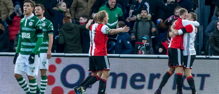 De bezoekers, juist teruggekeerd op het hoogste niveau, hielden het doel 24 minuten schoon, maar daarna ging het mis. Tonny Vilhena schoot van net buiten het strafschopgebied de 1-0 binnen. Net voor rust verdubbelde Jens Toornstra de marge. Na een combinatie met Rick Karsdorp nam Toornstra de bal aan de rechterkant van het veld mee met de knie, liet hem één keer stuiteren en haalde nog buiten het strafschopgebied op prachtige wijze uit: 2-0.