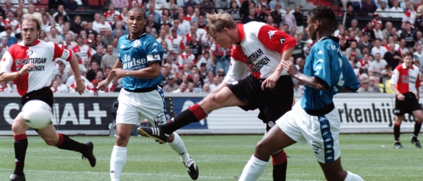 In de 27e minuut kreeg Van Hooijdonk wel een uitgelezen mogelijkheid om zijn eerste doelpunt voor Feyenoord te maken. Onder luid gejuich van het publiek meldde hij zich om de door scheidsrechter Ruud Bossen toegekende strafschop na een overtreding van Aron Winter op Jon Dahl Tomasson te nemen. Sparta-doelman Frank Kooiman keerde de inzet van Van Hooijdonk echter, die vervolgens de rebound tegen de onderkant van de lat kogelde.