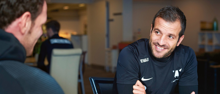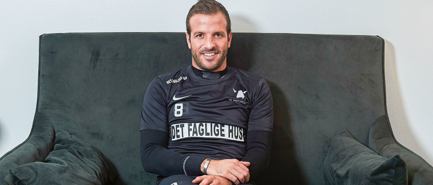Aan een tafel in een soort spelershome met antieke, vintage meubels zit Van der Vaart roerend met een staafje in een bekertje met zwarte koffie. Terwijl zijn teamgenoten in de stromende regen trainden bleef hij binnen, voor zichzelf trainend. Nu zit hij in een zwart t-shirt met het logo van FC Midtjylland op zijn borst en een zwarte korte broek klaar voor weer een interview. “Ja, het is elke week wel raak. Ik vergeet soms ook wie wanneer komt. En wat ik heb gezegd. Maar al die aandacht ben ik wel gewend uit mijn periodes bij andere clubs. Dan deel je de aandacht alleen vaker met andere spelers uit je team. Ja, bij FC Midtjylland ben ik nu een soort boegbeeld. Ach ja, ik probeer gewoon mijn steentje bij te dragen hier. Deze club bestaat pas sinds 1999, dat kun je je bijna niet voorstellen hè? Ze zijn al eens kampioen geworden, maar het is nog steeds een club in opbouw. Mijn taak is om hier de jonge gasten te helpen en ook te inspireren. Bovendien vind ik het zelf natuurlijk ook heel leuk om eindelijk weer te kunnen voetballen.”