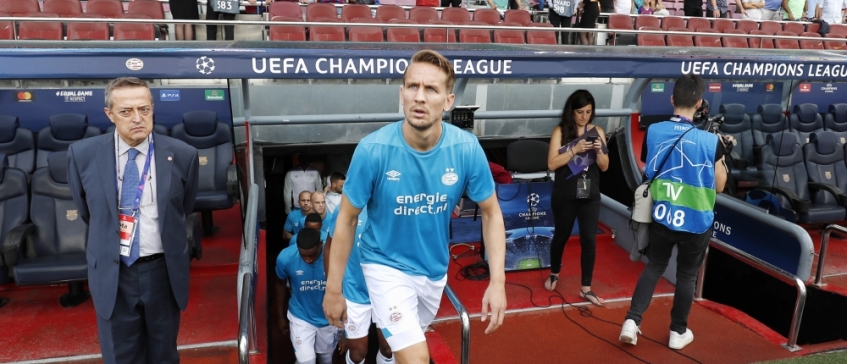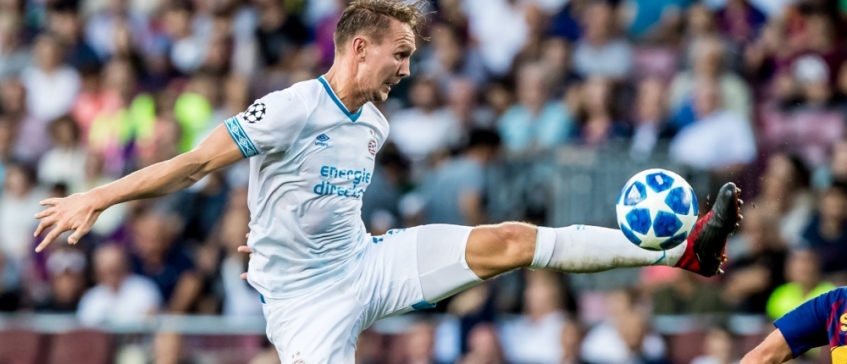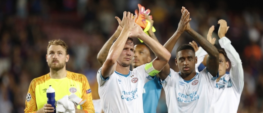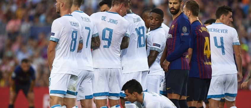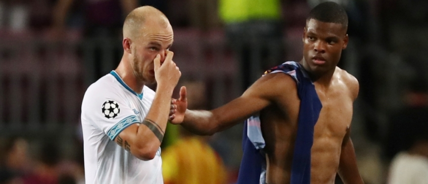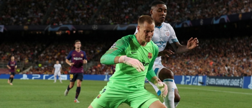 Steven Bergwijn in duel met Marc-André ter Stegen