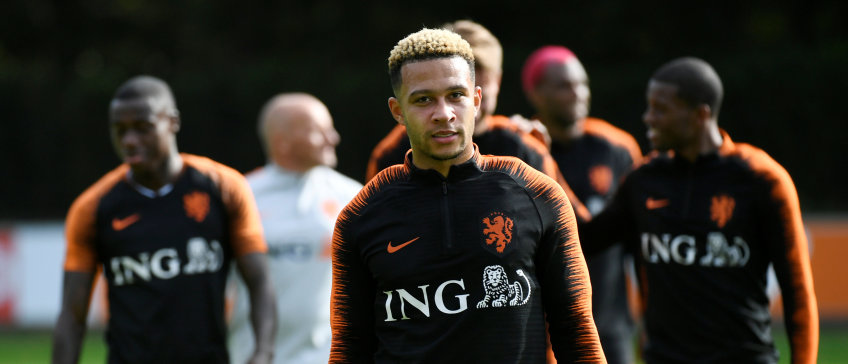 Een week eerder. Dinsdagochtend in Zeist, een paar dagen voor Nederland – Duitsland. Oranje traint op een veld van de KNVB Campus in de Zeisterbossen, op een van de warmste oktoberdagen ooit. Hoewel het kwik boven de twintig graden komt loopt Memphis, net als Ryan Babel, in een trainingstenue met lange mouwen en lange broek uit de kleedkamer richting het veld. Andere spelers dragen een korte broek. Op het hek rond het trainingsveld hangen bordjes met de namen van internationals. Daar worden ze verwacht voor zo’n twintig minuten praten met de pers, voordat de training begint. Bij het bord van Memphis staan twee cameraploegen en drie journalisten met een geluidsrecorder. Hij maakt zich op voor interlands 40 en 41: tegen Duitsland en België.