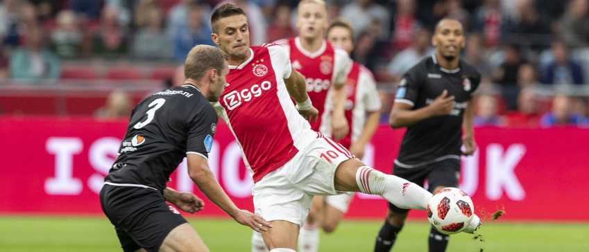 Cruijff voegde nog twee Europese bekers aan zijn palmares toe en groeide uit tot icoon van een iconische voetbalclub. Voor deze club wilde Dusan Tadic zijn hele leven lang al voetballen. Dat vertelt hij op de vrijdag voor de uitwedstrijd tegen VVV, als wij de Serviër vragen waarom hij in hemelsnaam is teruggekeerd naar de Eredivisie. In plaats van legendarische tempels als Old Traff ord, Wembley of Anfield moet hij nu zijn kunsten vertonen op De Oude Meerdijk, Woudestein en De Vijverberg. De clubs had hij voor het uitkiezen, beaamt hij. “Ik hoefde niet weg uit Engeland, maar Ajax is Ajax”, riposteert hij. “En Ajax is een van de tien grootste clubs van de wereld.”