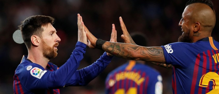 Messi had daarvoor een strafschop nodig. FC Barcelona kende zaterdag een zware kluif aan Rayo Vallecano. De 31-jarige aanvaller, al vijf keer winnaar van de ESM Gouden Schoen, moest er aan te pas komen om Barça om voorsprong te schieten. Het wonderkind uit Rosario, die deze week zijn terugkeer in de nationale ploeg bekendmaakte, heeft nu 52 punten verzameld in het Europese topscorersklassement.