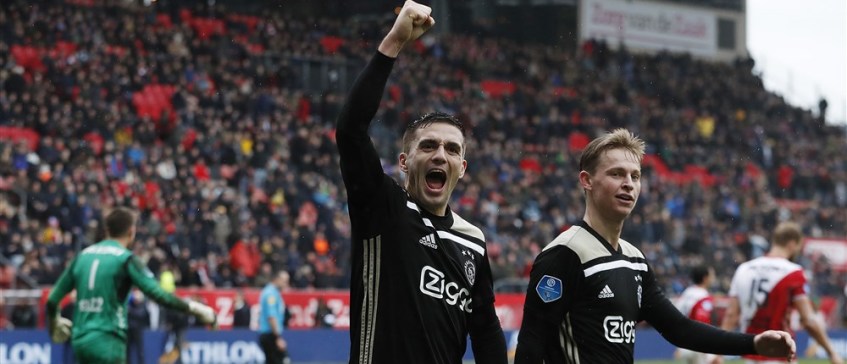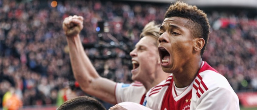 Na de moeizame competitiestart herpakte Ajax zich goed en werden de ruime overwinningen aan een geregen. FC Emmen en AZ werden met 5-0 verslagen, het lot van Excelsior (1-7) en De Graafschap (8-0) was nog zwaarder. Maar ook concurrent PSV bleef winnen en daarom was de achterstand op de koploper twee punten voor de laatste speelronde voor de winterstop. De laatste speelronde voor de kerst was voor Ajax een moeizame met de wedstrijd bij FC Utrecht. De laatste jaren werd er vrijwel nooit gewonnen en dus leek PSV een belangrijk voorschot op de titel te kunnen nemen. Ajax speelde onder aanvoering van een goede Kasper Dolberg echter erg volwassen en won uiteindelijk redelijk gemakkelijk met 1-3. Dolberg scoorde zelf, veroorzaakte een strafschop én zag Frenkie de Jong in de blessuretijd scoren.