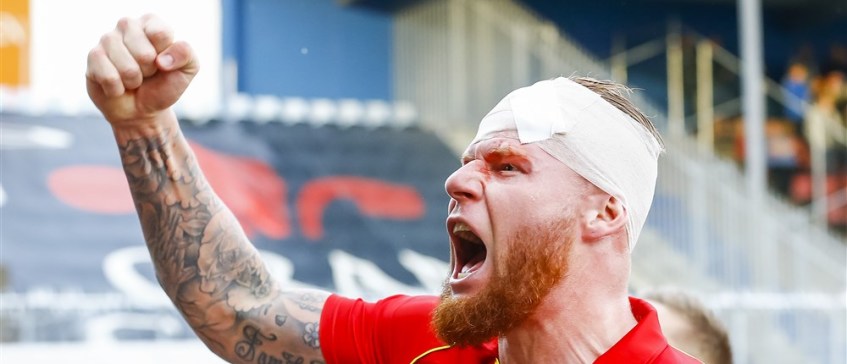 Het is bij lange na niet voldoende voor een horrorfilm, maar na afloop kunnen we inderdaad nog een litteken op het voorhoofd van de aanvaller zien zitten. De play-offs hebben hem eerder littekens bezorgd, toen hij in dienst van MVV was. “Die voel ik nog steeds. In mijn eerste jaar daar haalden we de halve finale, maar verloren we van De Graafschap. Een jaar later maakte ik de winnende bij Cambuur in de halve finale. In die finale verloren we toen van Roda. Ik hoop dat drie keer nu scheepsrecht is.