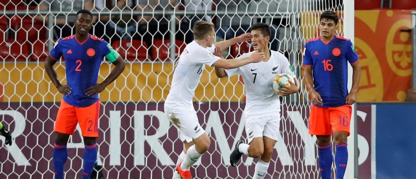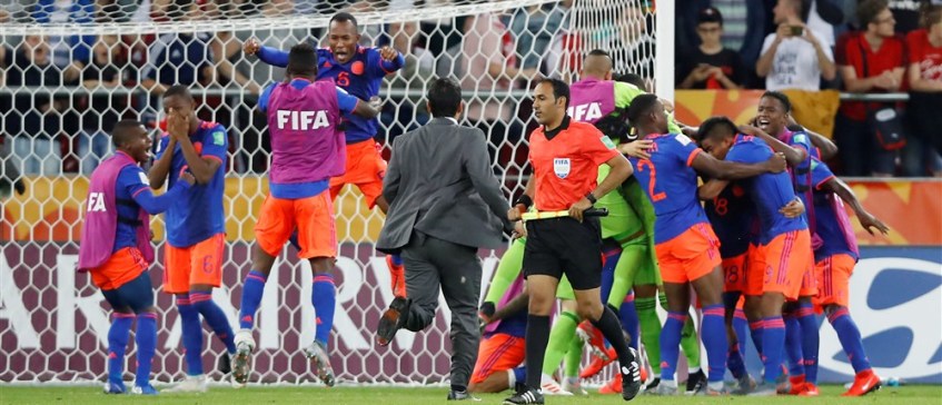 Colombia onder 20 viert feest na de overwinning op Nieuw-Zeeland in de achtste finales van het WK