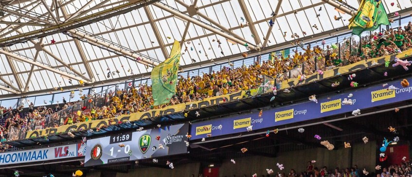 De Kuip werd in het duel tussen Feyenoord en ADO Den Haag mede gevuld door honderden kinderen uit het Sophia Kinderziekenhuis. Een groot deel van die kinderen nam zondagmiddag plaats op de Feyenoord-tribune recht onder het uitvak. Waar die tribune in het verleden nogal eens werd getrakteerd op een bierdouche of vuurwerk, was nu het tegenovergestelde het geval. Supporters van ADO hadden namelijk duizenden knuffels meegenomen om in de twaalfde minuut naar het vak vol kinderen te gooien. De knuffelregen is door de jaren een traditie geworden, nadat de actie in eerdere gevallen zo gewaardeerd werd door alle partijen.