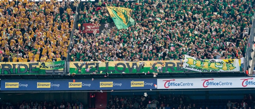 In de twaalfde minuut stond Feyenoord al op een 1-0 voorsprong, maar waren de ogen meer gericht op het uitvak. Tijdens de aangekondigde knuffelregen werd het spel even stilgelegd om ruimte te maken voor een daverend applaus vanaf zowel de tribune als het veld.