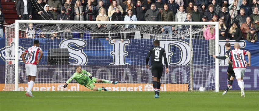 Zou AZ dit seizoen al elf keer een strafschop hebben gekregen, dan zou Koopmeiners nu topscorer van de eredivisie zijn. Maar op de topscorerslijst hoeft hij desalniettemin slechts drie spelers voor zich te laten. Evangelos Pavlidis, Idrissi en Donyell Malen. Die scoorde dit seizoen al tien keer. Twee keer vanaf de strafschopstip.