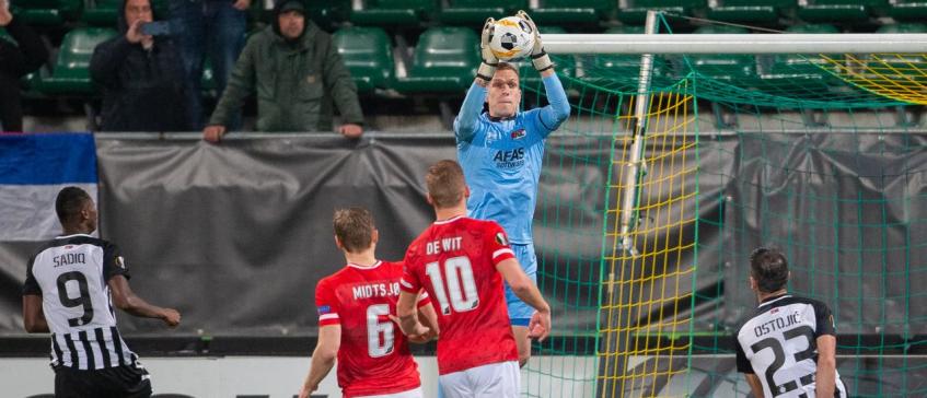 Bizot ontfermt zich over de bal in het Europa League-duel met Partizan Belgrado