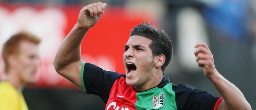 Moestafa El Kabir in het shirt van NEC, op de achtergrond Ken Leemans van VVV-Venlo