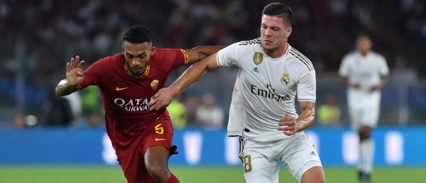 Luka Jovic in duel met Juan Jesus van AS Roma
