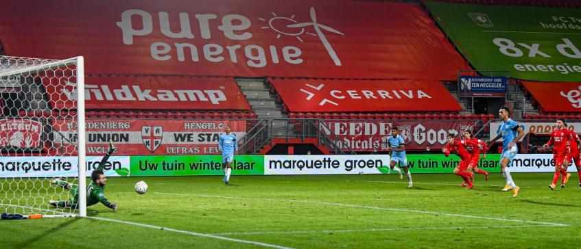 Joël Drommel keert de strafschop van PSV'er Eran Zahavi