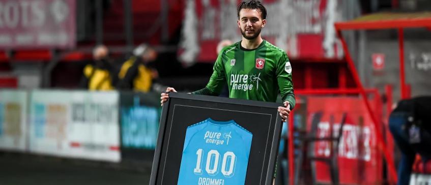 De doelman van FC Twente is bezig aan een ijzersterk seizoen. Dat werd tijdens de afgelopen interlandperiode beloond met een plek in de selectie van het Nederlands elftal, waar hij Justin Bijlow van Feyenoord verving. Gisteren onderstreepte hij zijn goede vorm met een uitstekend optreden tegen PSV. Tegen de Eindhovenaren speelde Drommel zijn honderdste wedstrijd in het shirt van FC Twente en hield hij de Tukkers in de westrijd met een aantal hele goede reddingen. Ook stopte vlak hij voor rust de strafschop van Eran Zahavi.