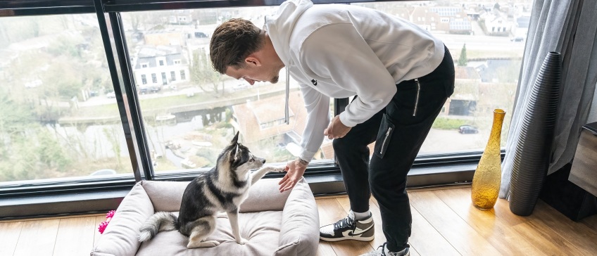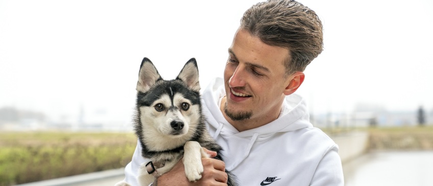 "We dachten al langer na over het nemen van een hond. Izzy is een pomsky, een kruising tussen een pomeriaan en een Siberische husky. Ze blijven klein en zijn erg actief", vertelt Nick Bakker in ELF Voetbal nummer 3, die twee weken geleden is verschenen en gemakkelijk online via deze link is te bestellen. De steunpilaar van FC Emmen staat centraal in de rubriek Viervoeters waarbij profvoetballers met hun hond worden geportretteerd.