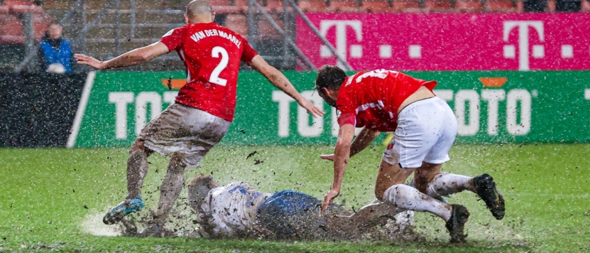We sluiten het afgelopen weekend af in de Eredivisie, want het was een ander weekend dat normaal. Zoals we in het stukje over FC Utrecht - Vitesse al aangaven, speelde de storm een enorm grote rol. Daardoor werd vrijdag al de hele speelronde eruit gegooid en ging Fortuna Sittard - Sparta Rotterdam niet door. Zaterdag werd er weer gevoetbald en eindelijk was dat ook weer met volle stadions. De fans zorgden ervoor dat de sfeer bij alle wedstrijden heel anders was. Zij het overigens niet makkelijk, want het waaide erg hard en het regende pijpenstelen. Paraplu's vlogen door het stadion langs de fans die in zeiknatte regenpakken hun ploeg aanmoedigden. Het zorgde ook voor ander type wedstrijden. Normaal voetbal spelen zat er niet in, want de bal rolde niet normaal door de stroeve grasmatten en we keiharde wind maakte het ook voetballen ook extra zwaar.