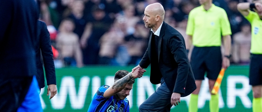 Erik ten Hag zal met een heel dubbel gevoel terugkijken op de afgelopen week. Er werd officieel bekend dat de succestrainer deze zomer een droomtransfer gaat maken naar Manchester United, maar in dezelfde week liep hij met Ajax ook een absolute deceptie op. Zondag vond immers de bekerfinale plaats tussen PSV en Ajax en die verloren de Amsterdammers op uiterst pijnlijke wijze. Nadat Ryan Gravenberch Ajax op voorsprong had gezet, leek het 2-0 te gaan worden door Noussair Mazraoui. De VAR stak daar echter een stokje voor en vervolgens kantelde de wedstrijd volledig. Davy Klaassen zorgde alsnog voor de gelijkmaker, maar weer zette de VAR een kruis door een Ajax-doelpunt. De paal werd nog geraakt en er werd een bal van de lijn gehaald, waarna PSV uiteindelijk met de beker in de handen stond.