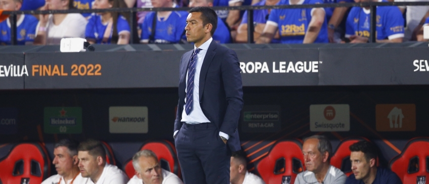Giovanni van Bronckhorst langs de lijn namens Rangers FC.
