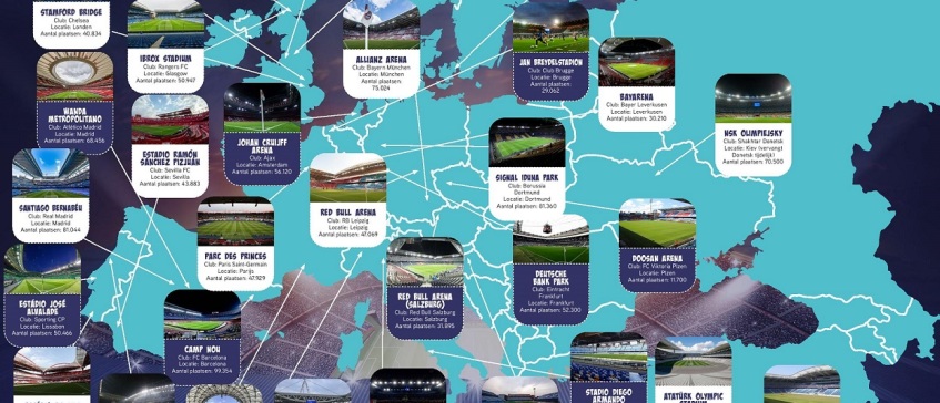 Bij het mooiste toneelstuk hoort ook bij het mooiste podium. Of nog beter: podia. De mooiste voetbalstadions van Europa zullen weer volstromen met supporters. Waar staan ze precies? En wat moet je weten van deze Champions League-stadions? In PANNA! komen ze alle 32 (!) aan bod met de informatie die jij wilt weten!