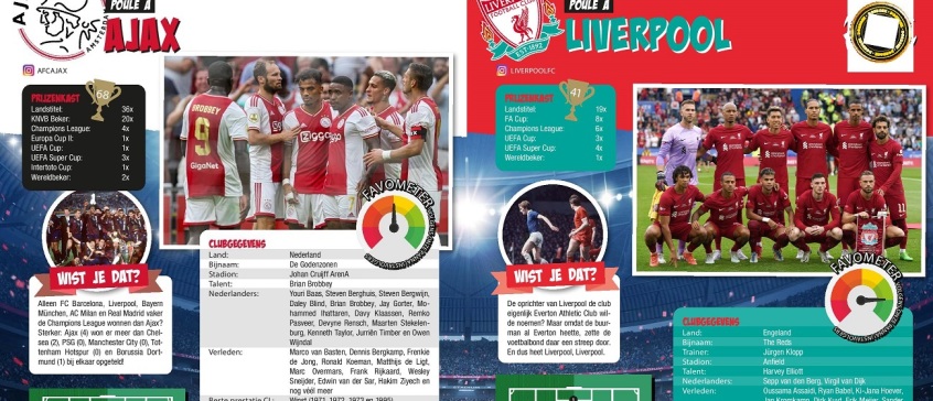 De Champions League is de dansvloer voor de grootste sterren van de voetbalwereld. Om alvast warm te draaien voor de groepsfase zetten wij alle teams uit alle poules voor je op een rij! De prijzenkast, alle clubgegevens, een portret van de sterspeler, de mogelijke opstelling en van elke club een wist je dat? Je vindt alle deelnemende clubs keurig verdeeld over de acht poules.