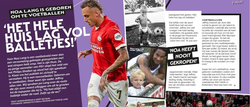 Voor Noa Lang is een voetbalveld meer dan een verzameling geknipte grassprieten met wat strepen kalk erop. Het is zijn thuis. De 24-jarige aanvaller van PSV stapt het veld van het Philips Stadion op alsof het zijn speeltuin is. Klaar om het publiek én zichzelf te vermaken. Hij is een rasvoetballer. Geboren om te voetballen. Daar weet zijn vader Jeffrey alles van. Wij spraken pa Lang over de route die zijn zoon moest afleggen om uit te groeien tot de topspeler die hij is. "Hij had altijd een balletje onder de voet. Zelfs op de wc!"