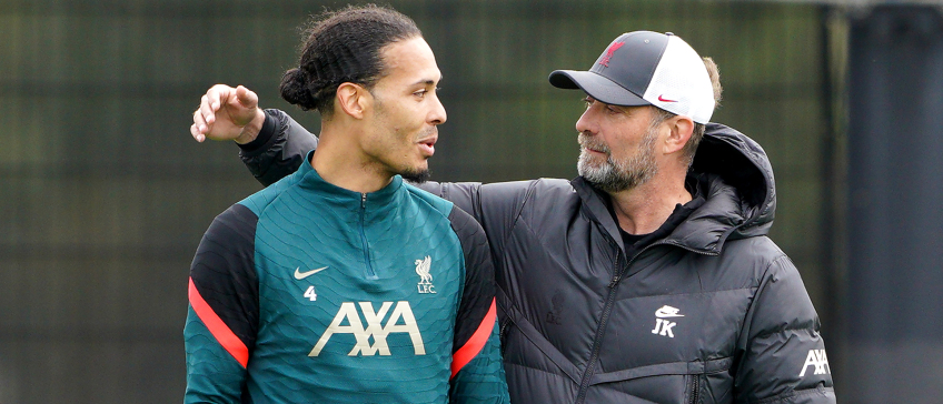 Van Dijk in gesprek met Klopp, die hem na het vertrek van Jordan Henderson zal promoveren naar Liverpool-captain.