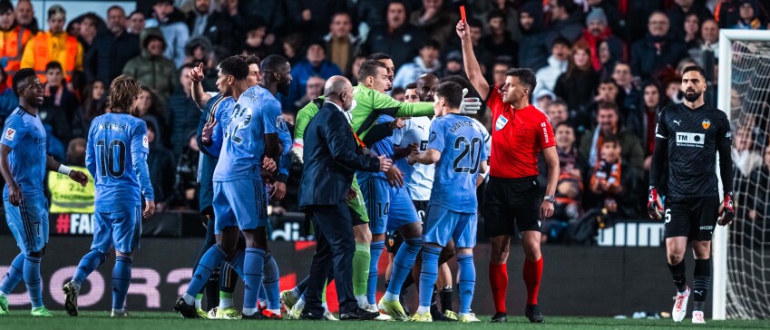 Als het aan Real Madrid had gelegen, was dit echter niet de eindstand geweest. Na bijna tien minuten blessuretijd floot Gil Manzano voor het einde van de wedstrijd, terwijl de Koninklijke net bezig was met een aanval. De voorzet werd binnengekopt door Bellingham, maar Gil Manzano wilde, tot frustratie van de koploper, nergens van weten. Uit de protesten ontstond nog een opstootje en Bellingham zelf kreeg na het fluitsignaal nog rood voor protesteren.
