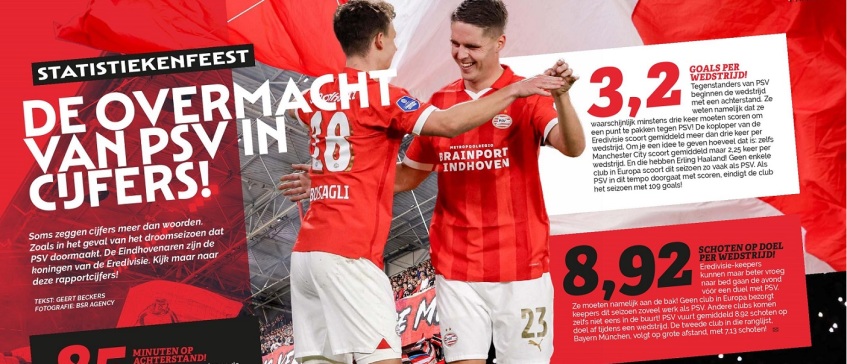 Soms zeggen cijfers meer dan woorden. Zoals in het geval van het droomseizoen dat PSV doormaakt. De Eindhovenaren zijn de koningen van de Eredivisie. In PANNA! zetten we een aantal bijzondere cijfers over PSV op papier met uitleg.