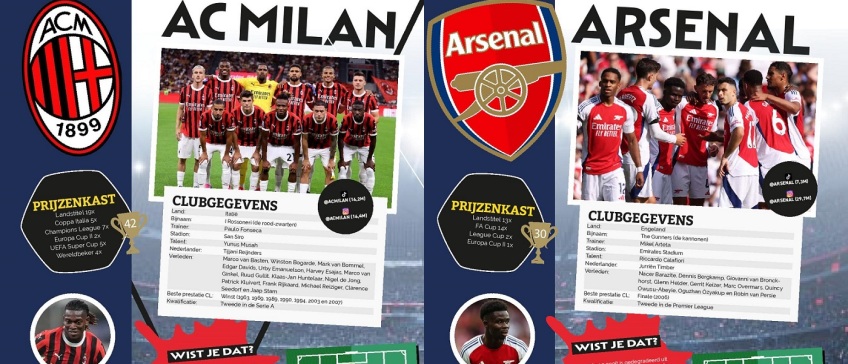 Dan vind je ook de uitleg over de nieuwe opzet van de Champions League, vind je op de kaart van Europa waar alle deelnemers vandaan komen en een overzicht van alle PANNA! Sterrenteamdagen in de herfstvakantie. Op een van de posters kun je alle uitslagen van alle wedstrijden in de competitiefase van de Champions League invullen. Naast een uithaalposter van het volledige Champions League-programma, vind je posters van Erling Haaland (Manchester City), Gjivai Zechiël (Feyenoord), Johan Bakayoko (PSV), Endrick (Real Madrid), Dani Olmo (FC Barcelona), Florian Wirtz (Bayer Leverkusen) en Lily Yohannes (Ajax Vrouwen).