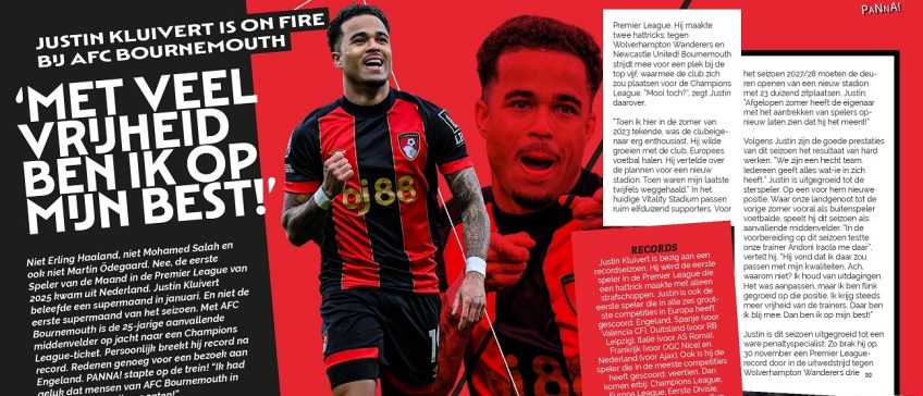 Niet Erling Haaland, niet Mohamed Salah en ook niet Martin Ödegaard. Nee, de eerste Speler van de Maand in de Premier League van 2025 kwam uit Nederland. Justin Kluivert beleefde een supermaand in januari. En niet de eerste supermaand van het seizoen. Met AFC Bournemouth is de 25-jarige aanvallende middenvelder op jacht naar een Champions League-ticket. Persoonlijk breekt hij record na record. Redenen genoeg voor een bezoek aan Engeland. "Ik had geluk dat mensen van AFC Bournemouth in Valencia op de tribune zaten!"