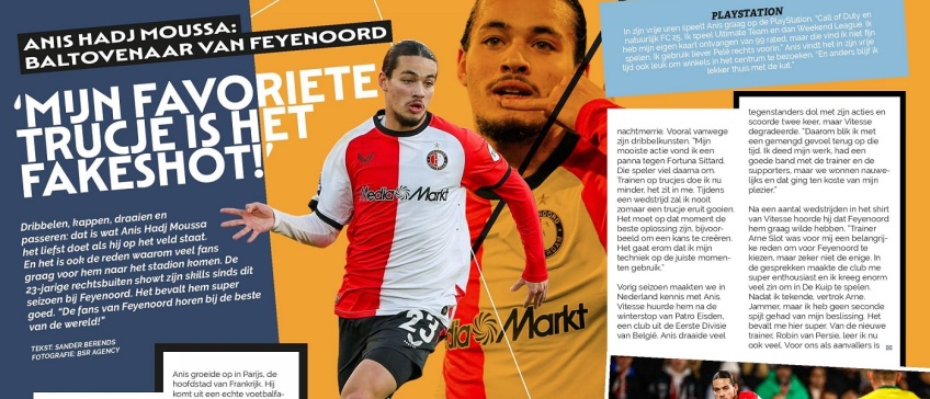 Dribbelen, kappen, draaien en passeren: dat is wat Anis Hadj Moussa het liefst doet als hij op het veld staat. En het is ook de reden waarom veel fans graag voor hem naar het stadion komen. De 23-jarige rechtsbuiten showt zijn skills sinds dit seizoen bij Feyenoord. Het bevalt hem super goed. "De fans van Feyenoord horen bij de beste van de wereld!"