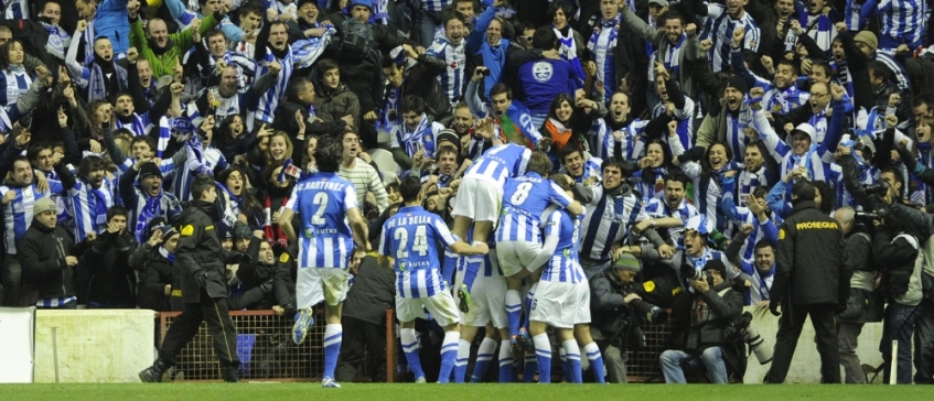 Vreugde na een winnende goal van Real Sociedad tegen Athletic Bilbao