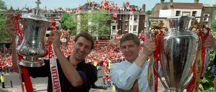 Een jaar na zijn aanstelling stevende Arsène Wenger al af op zijn eerste kampioenscahp met The Gunners. Uiteindelijk liet de ploeg uit Londen op de allerlaatste speeldag Manchester United achter zich met een putenverschil van één. Met Nederlanders Dennis Bergkamp en Marc Overmars in het team kon het elfde kampioenschap uit de clubgeschiedenis gevierd worden. Ook de FA Cup werd in het voordeel van The Gunners beslist. Wenger was nu verzekerd van een topstatus in Noord-Londen.