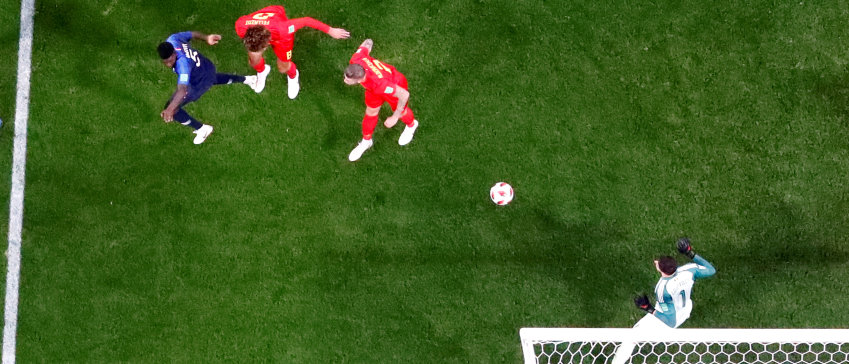 Frankrijk maakte het verschil met een hoekschop. Een rake kopbal van Samuel Umtiti leidde Les Bleus naar de eerste WK-finale sinds het échec van 2006. De Fransen bleken simpelweg beter in het nemen van hoekschoppen dan België. Van de vijf hoekschoppen die De Rode Duivels kregen, bereikte er geen enkele een speler in het rood.