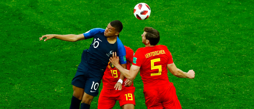 Met spelers als Marouane Fellaini, Vincent Kompany, Axel Witsel en Romelu Lukaku in de basis zat België om luchtarsenaal niet verlegen. Toch verloor de ploeg de strijd door de lucht. Vooral opvallend: niet alleen won Frankrijk meer luchtduels dan België; in veertien van de in totaal 21 uitgevochten luchtduels was Frankrijk de aanvallende partij. Vincent Kompany en Toby Alderweireld, het Belgische verdedigingsduo, sloot zelfs geen enkel luchtduel als winnaar af.