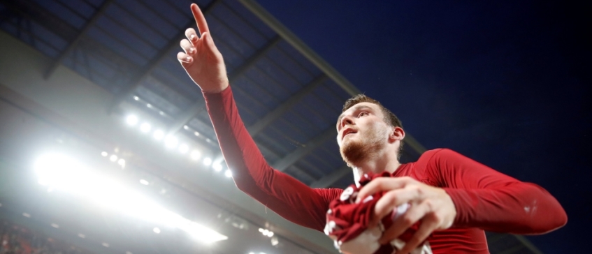 Maar Liverpool tikt in een goed seizoen de zestig wedstrijden wel aan, dus iedereen krijgt zijn kans op een dag. Die van Robertson komt in december, de resultaten zijn gemixt. Het is pas in januari tegen Manchester City dat Andy Robertson zich naar een vaste plek in het eerste katapulteert. De ploeg van Pep Guardiola komt als ongeslagen koploper naar Anfield. Zowel de eerste als de tweede helft kent een fase waarin de tegenstander volledig onder de voet gelopen wordt. De pressie, bluf en het uithoudingsvermogen van de Schot maken van hem een belangrijke schakel in het elftal dat Europa shockeert. Liverpool loopt Porto, nogmaals Manchester City en AS Roma onder de voet.