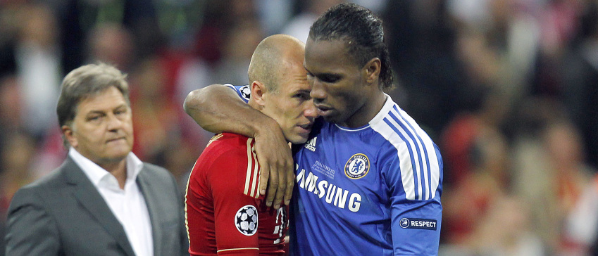 Chelsea begon bijzonder zwak een de strafschoppen, want nadat Philipp Lahm raak schoot namens Bayern wist doelman Manuel Neuer de inzet van Juan Mata te keren. Mario Gómez en Neuer faalden vervolgens niet en datzelfde deden David Luiz en Frank Lampard namens Chelsea. Daarna ging het helemaal mis voor FC Hollywood. Ivica Olic en Bastian Schweinsteiger wisten het net niet te vinden en zagen dat Ashley Cole en hoofdrolspeler Drogba hun zenuwen wel in bedwang wisten te houden en de cup met de grote oren meenamen naar Stamford Bridge.