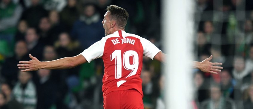 De Jong sprak na zijn winnende goal voor het Nederlands elftal tegen Noord-Ierland te hopen op de ketchuptheorie van Ruud van Nistelrooij. Als een doelpunt eenmaal valt, blijven ze stromen, als een druppel uit een fles ketchup. Waag het niet te twijfelen aan de wijsheden van Nederlands topscorer in de Champions League. De Jong maakte bij terugkomst in Sevilla de winnende treffer tegen Levante. Na drie wedstrijden was het weer raak. Wederom beslissend, maar nog duizendmaal zo belangrijk: in het Estadio Benito Villamarín, het hol van de leeuw van aartsvijand Real Betis, maakte De Jong de 1-2.