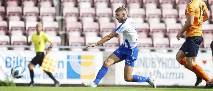 Memisolgu maakt een van zijn vele doelpunten voor Eskilstuna City.