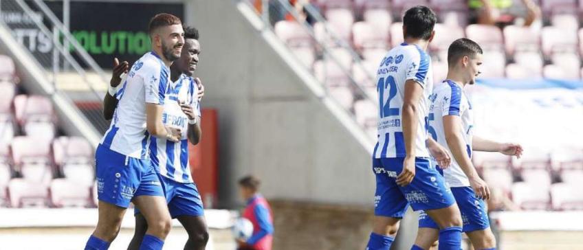 Memisoglu (rugnummer 10) viert een treffer namens Westlandia.