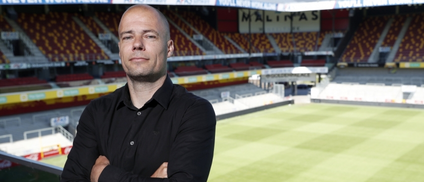 Danny Buijs in het stadion van zijn nieuwe werkgever KV Mechelen.