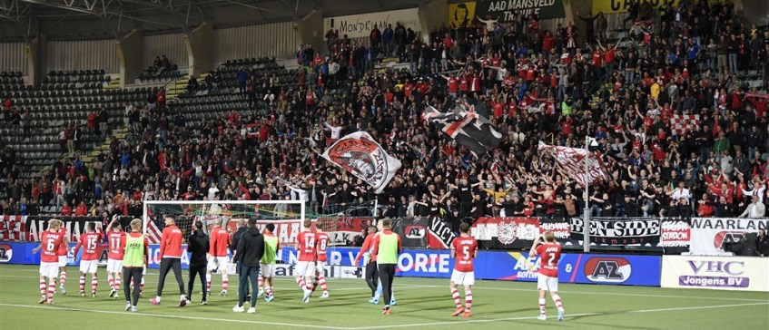 In één foto: AZ, 'de thuisclub', met helemaal achterin de hoofdsponsor van het ADO-stadion.