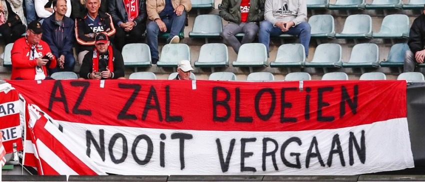 Ook het Waarland-spandoek dat normaal gesproken in het AFAS Stadion hangt is mee. Een groep supporters uit het Noord-Hollandse dorp Waarland, vijftien minuten rijden van Alkmaar, reist al jaren mee met AZ. Ook nu.