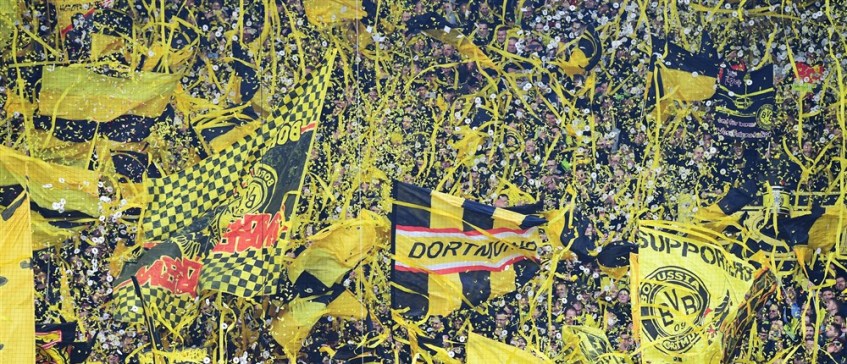 Dus pers je in de U-Bahn (gaat verbazingwekkend soepel in de wetenschap dat er tachtigduizend man tegelijk naar hetzelfde onderweg is), voor de tien minuutjes richting het stadion. Bindend advies voor bezoekers van de Gelbe Wand, officieel bekend als de Südtribune: kom op tijd! Dat de rijen voor de ingang, waar ongekend lusteloos wordt gefouilleerd, langer zijn dan bij Telstar is vast geen nieuws, maar de Gelbe Wand neemt zijn plaatsen al vroeg in. Wie drie kwartier voor het begin binnenkomt, heeft nog wel plek boven. Veel later is niet aan te raden, of je moet het toevallig heel leuk vinden om negentig minuten op een trap in de weg te staan voor duizenden bierlustige oosterburen. Haal dat bier trouwens liever vooraf, het is nogal een crime om je plek te verlaten én terug te vinden.