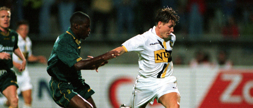 Foto: Ervin Lee tijdens zijn periode bij Fortuna Sittard in duel met Louis Laros (Vitesse)