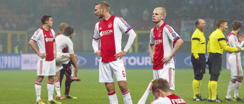 De Ajax-spelers balen na het nipt mislopen van de achtste finales van de Champions League.