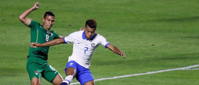 David Neres in duel met Diego Bejarano van Bolivia op de Copa América.