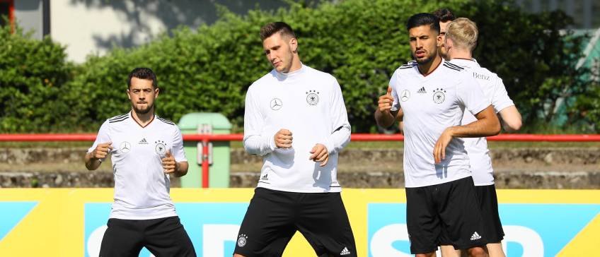 Younes tijdens een training van de Duitse ploeg. Rechts Niklas Süle, Emre Can en Julian Brandt.