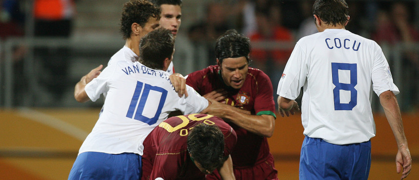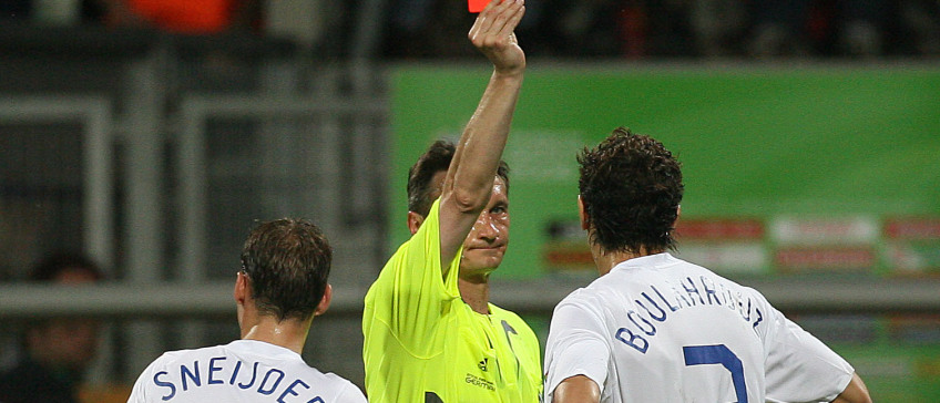 Al in de zevende minuut vliegt hij op de bon. "Daar mocht ik absoluut niet over klagen. Ik wist dat scheidsrechters in de openingsfase niet direct rode kaarten uitdeelden. Bovendien vond de overtreding plaats op de middenlijn." Met een vliegende tackle trapt hij met zijn rechtervoet op het rechterbovenbeen van Cristiano Ronaldo. "Een samenloop van omstandigheden. Ik wilde de bal voor hem wegtrappen en had niet verwacht dat hij zijn been zou heffen."